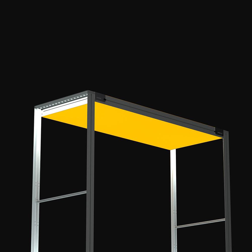 Doplňte svoj stánok výrazným prvkom - strechou Brightbox Pro Flex. Urobí dojem zhora vďaka elegantnému podsvietenému rámu v striebornej farbe. Súčasťou sú spojky na jednoduché upevnenie k stenám. Dodáva sa s mäkkou prenosnou taškou - ideálna pre veľtrhy a akcie.