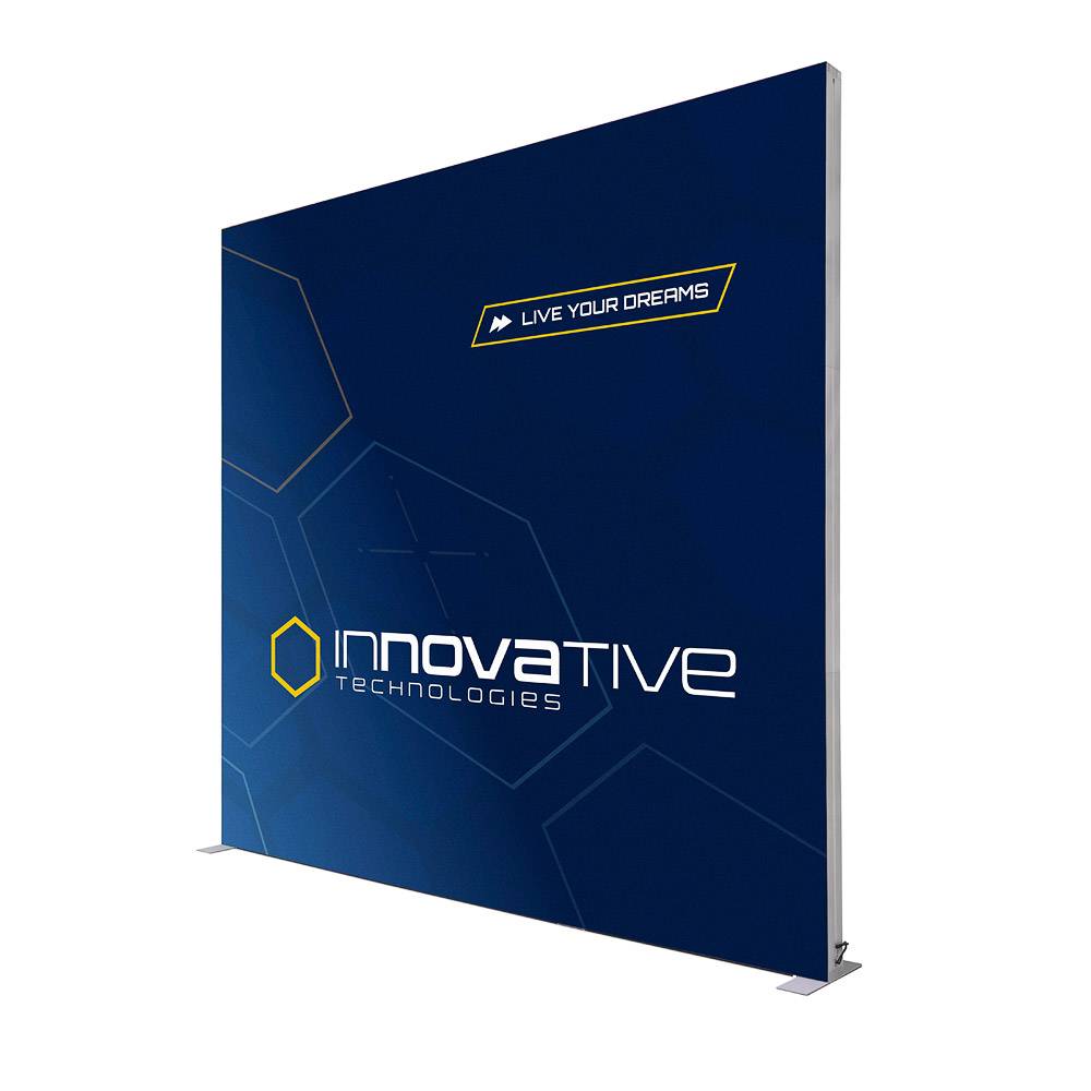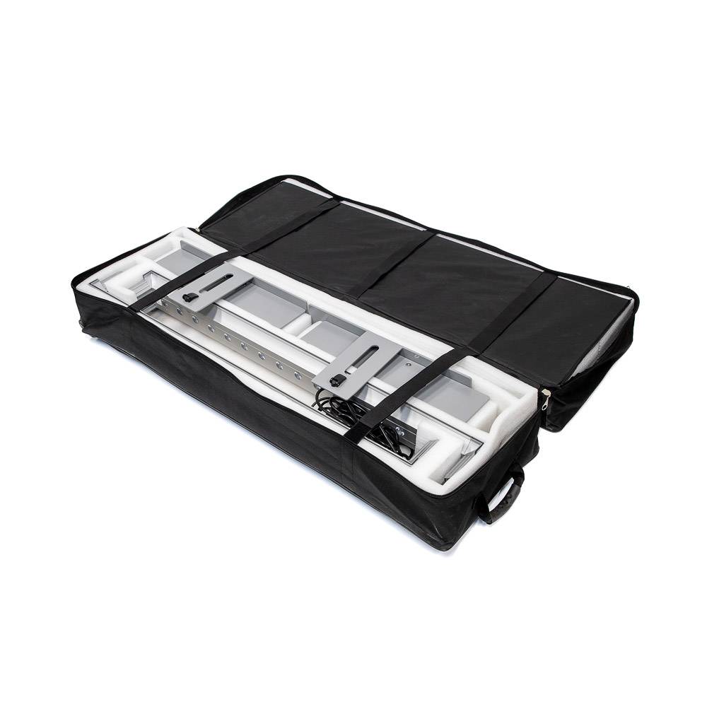 Premeníte svoj priestor pomocou svetelnej steny Brightbox Pro Flex. Elegantný hliníkový rám 120 mm v striebornej farbe umožňuje rýchlu montáž bez potreby náradia a jednoduchú výmenu potlače látky. Systém je možné rozšíriť o moduly strechy alebo úložného priestoru. Centrálne LED osvetlenie zaručuje výbornú viditeľnosť. Súčasťou je mäkká prenosná taška pre jednoduché prenášanie.- Kde sa spája pôsobivosť a svetlo