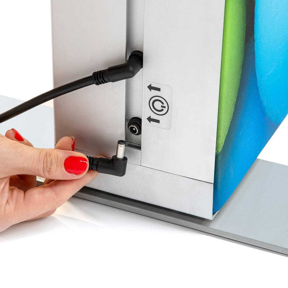 LED svetlá umiestnené centrálne, transformátor a kábel sa pripájajú zboku