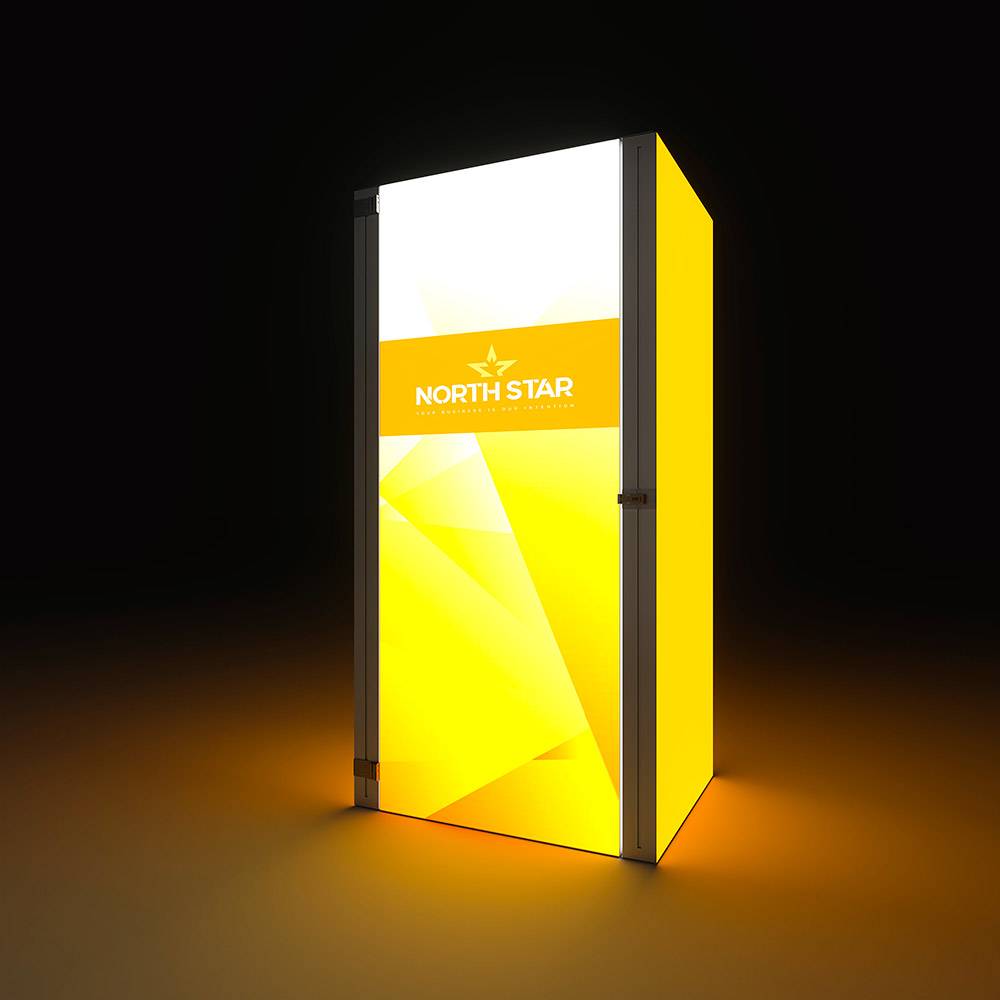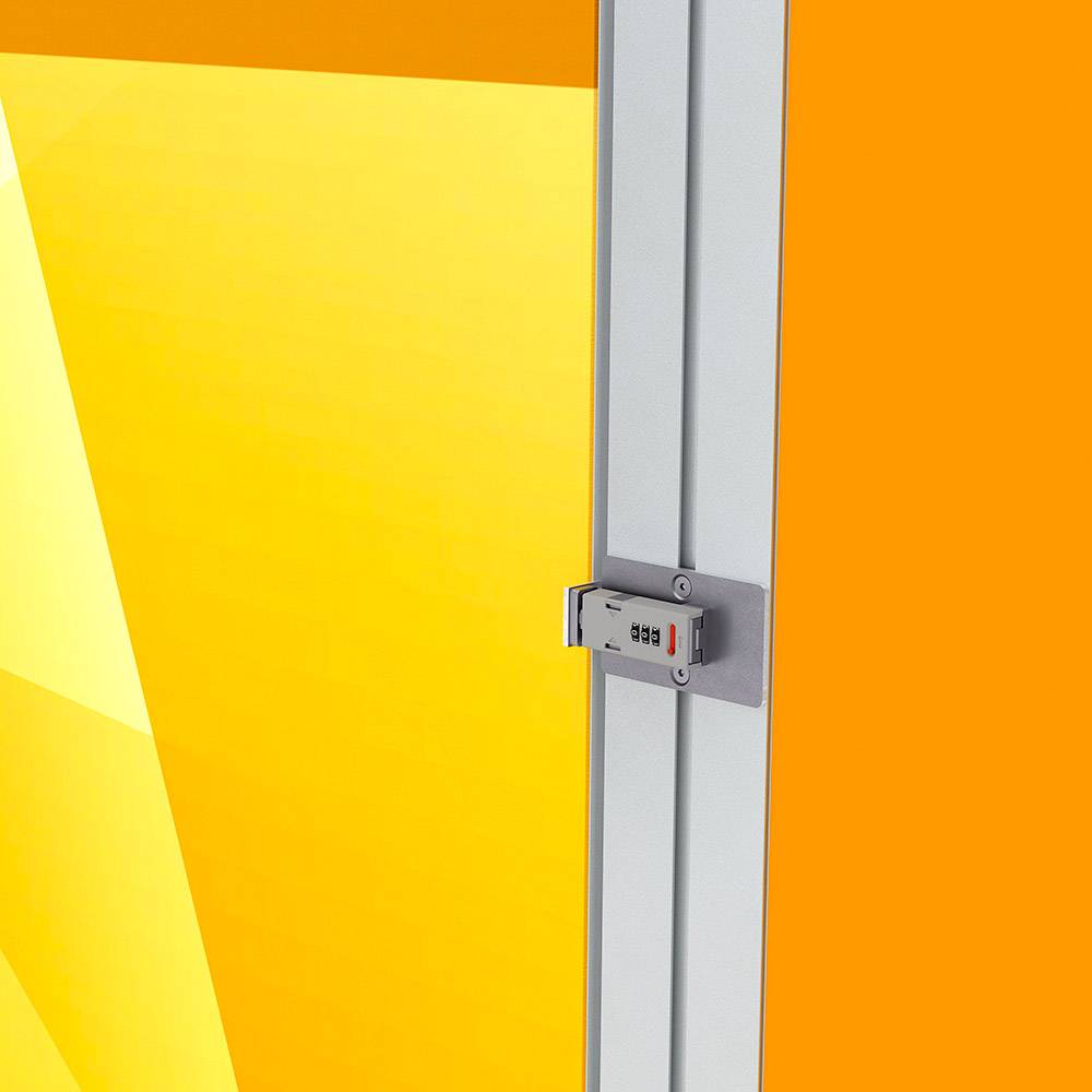 Uchovajte svoje veci v bezpečí a zároveň štýlovo s úložným priestorom Brightbox Pro Flex. Elegantný hliníkový rám ľahko prepojíte so zvyškom zostavy Brightbox Pro Flex. Vstavaný zámok chráni vaše osobné predmety, zatiaľ čo LED osvetlenie dodá vašej zostave profesionálny vzhľad.- Vytvorte na svojom stánku úložný priestor