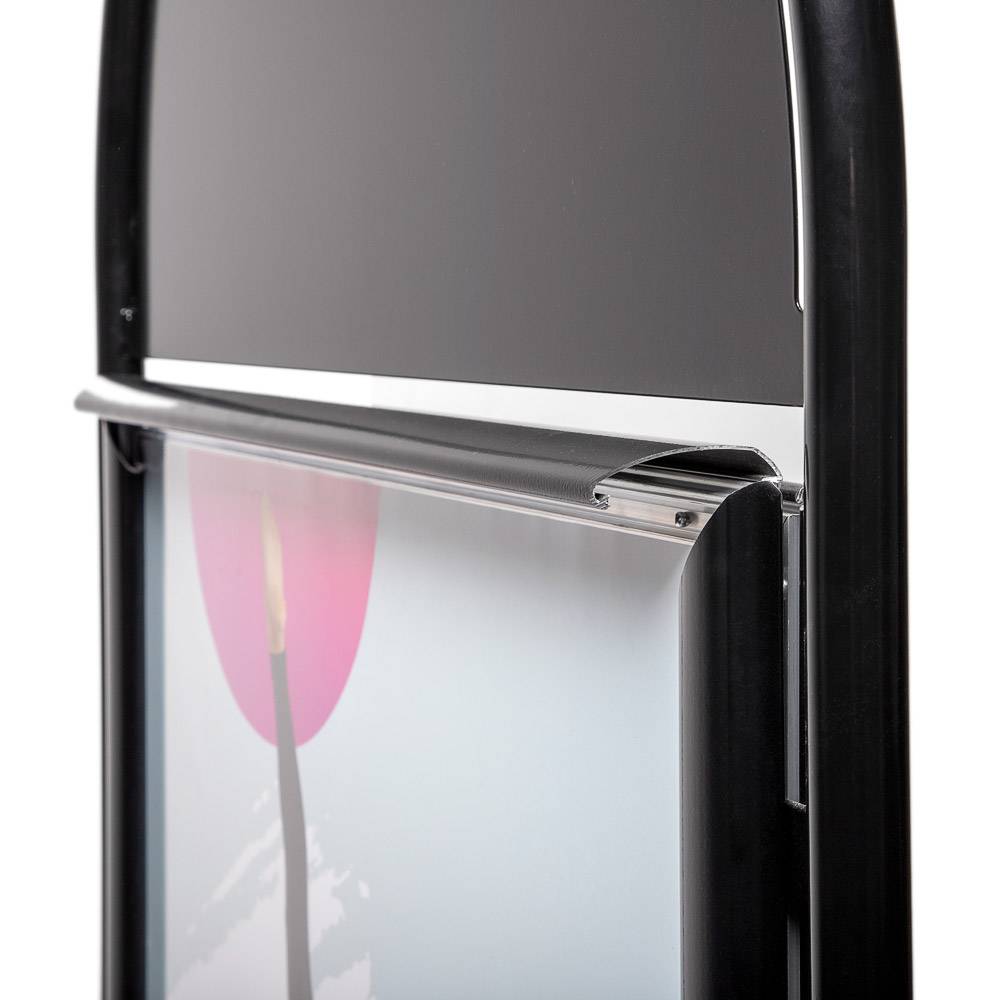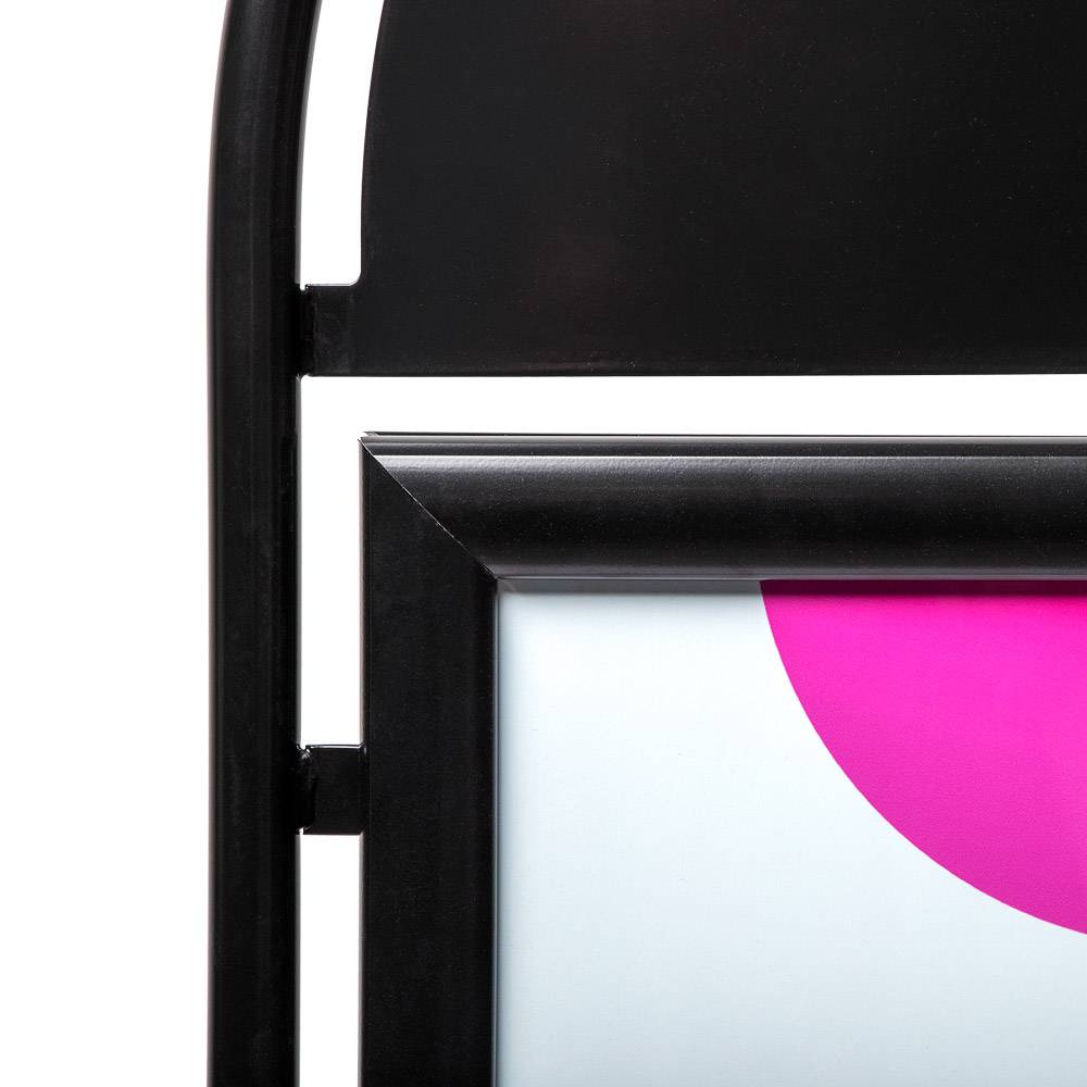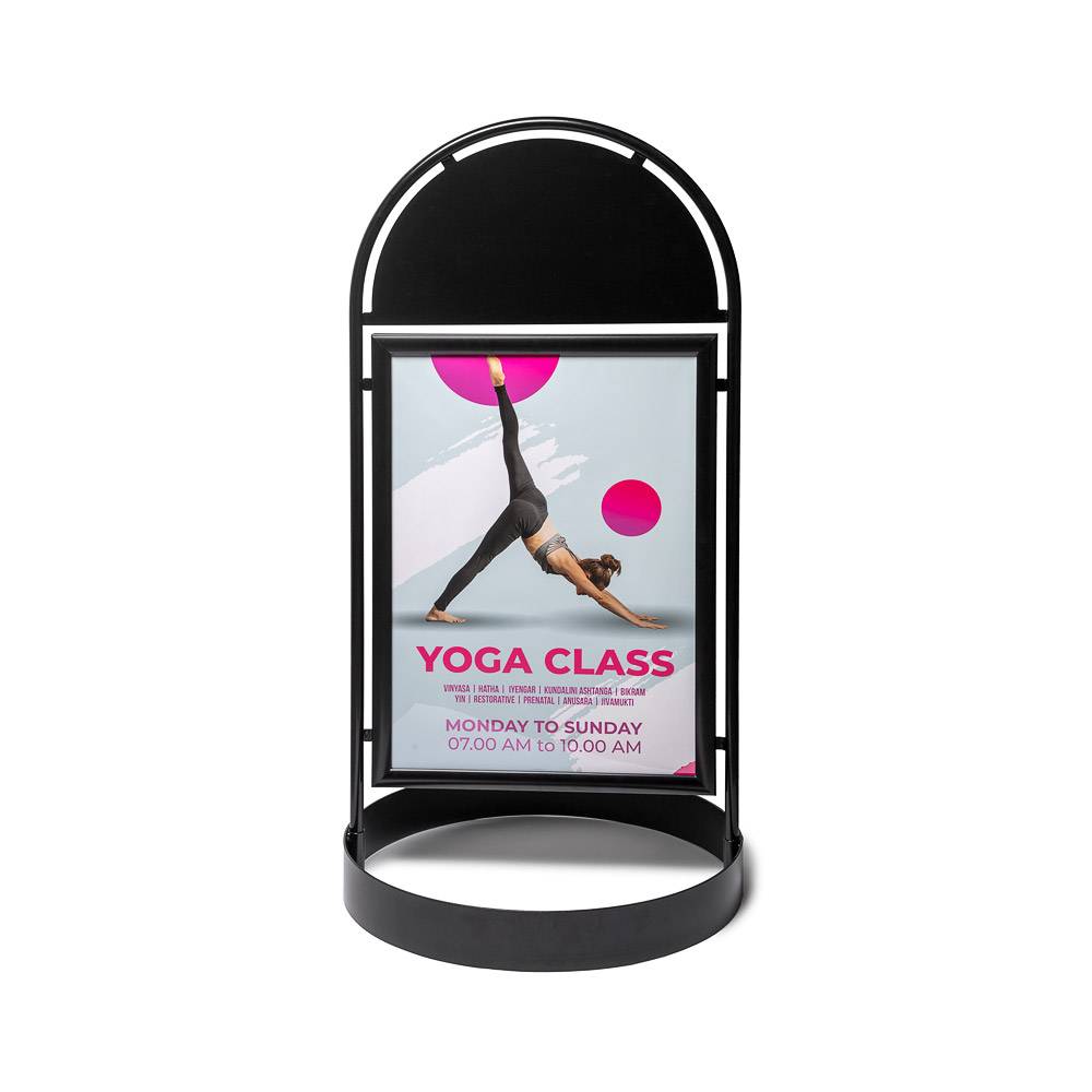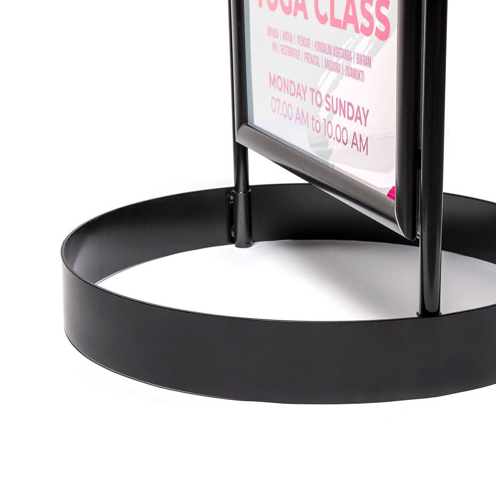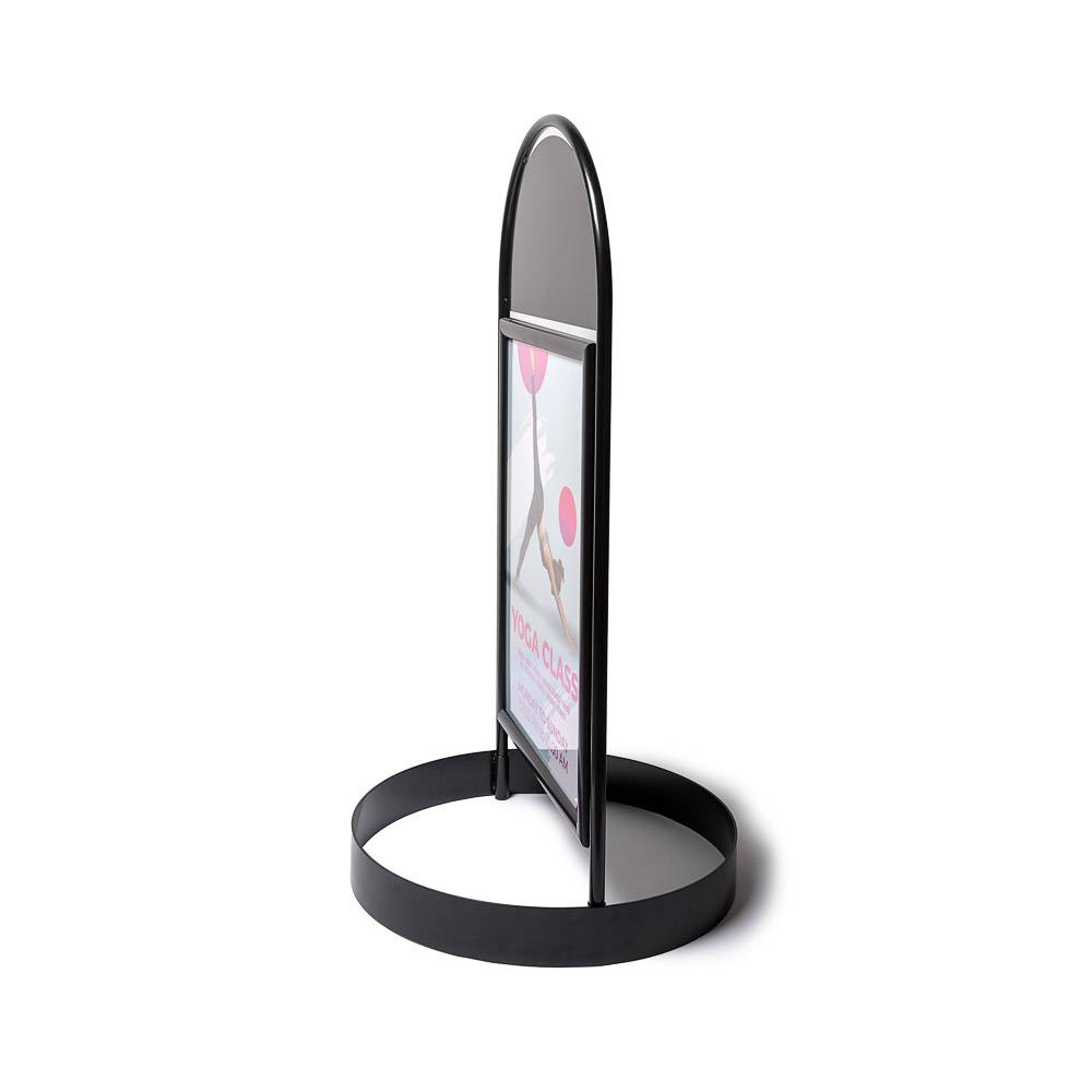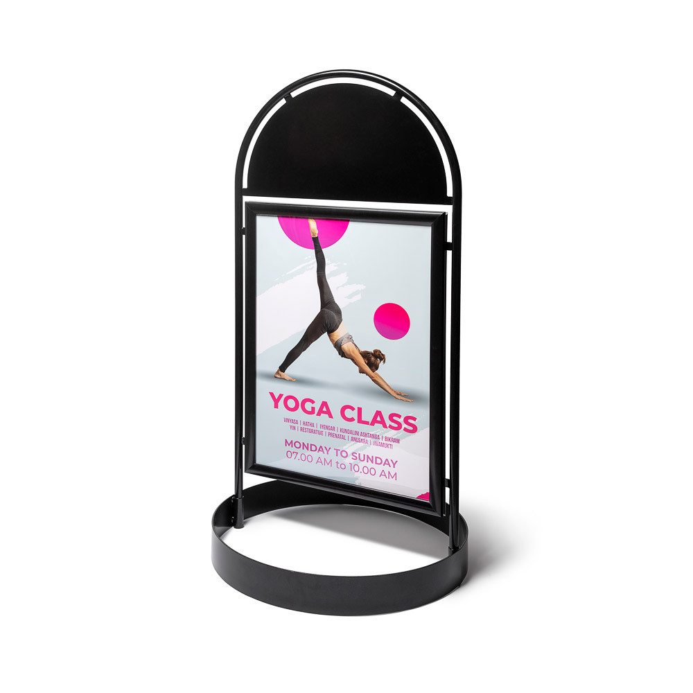 Buďte vidieť ulicu s City Sign Elegant Steel. Jeho kruhová oceľová základňa zaisťuje bezpečnosť na chodníku, zatiaľ čo práškovo lakovaný rám odolá všetkým poveternostným podmienkam. Zobrazte svoje oznámenie z oboch strán a zdôraznite svoju značku na zaoblenom vrchu. Odolné, štýlové a perfektné pre mestské prostredie!- Okrúhla podstava pre bezpečné umiestnenie na chodníku