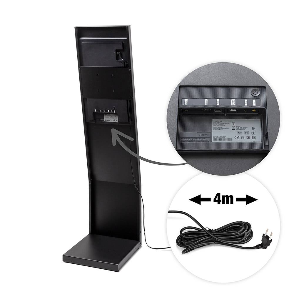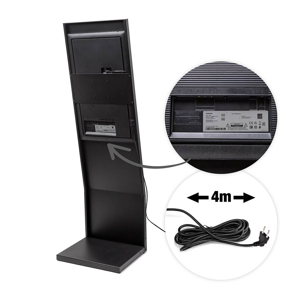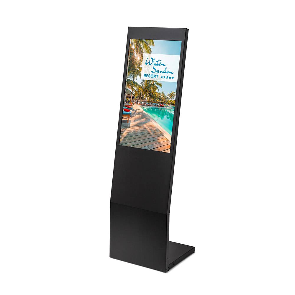 Jeho štíhly tvar písmena L zaručuje optimálnu viditeľnosť vašej prezentácie aj v stiesnených priestoroch. UHD obrazovka Samsung s uhlopriečkou 24" alebo 32" je umiestnená v elegantnom kovovom ráme s povrchom odolným voči odtlačkom prstov. Vďaka odnímateľnej základni sa stojan rýchlo zostavuje a ľahko skladuje - stačí ho priskrutkovať a je hotový. Ideálny pre vstupy do obchodov, výstavy, pohostinstvá a iné vnútorné priestory. Prehrávajte svoj obsah 24/7 prostredníctvom USB alebo sa rozhodnite pre dokonalé riešenie správy obsahu - Samsung VXT CMS!- Digitálny stojan s 24" alebo 32" obrazovkou Samsung