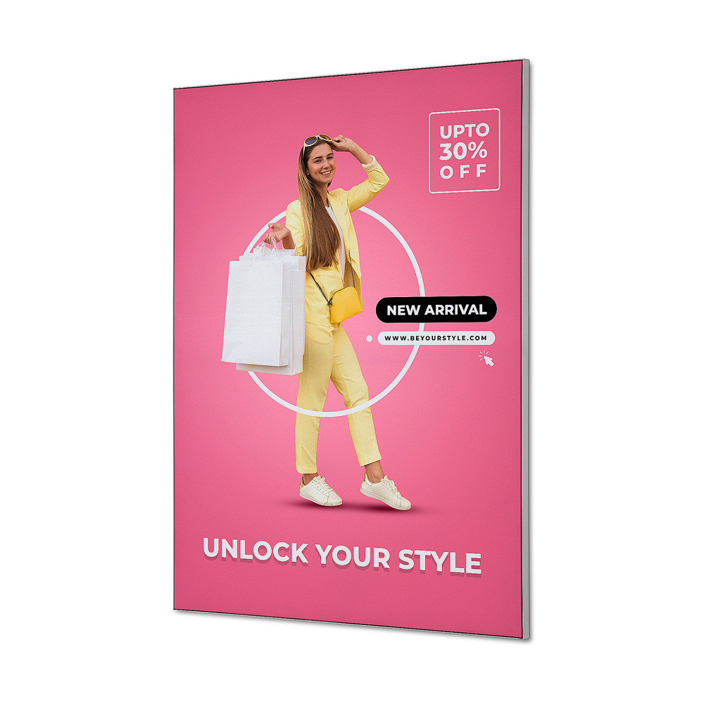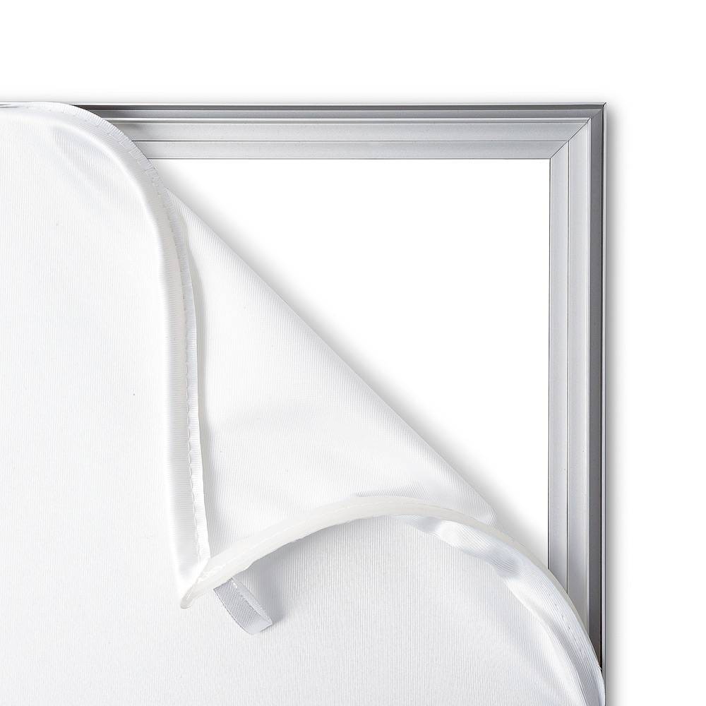 Klasický strieborný tenký 22mm profilTextilný prepínací rám Elegant je nástenný rám s veľmi tenkým strieborným profilom o hĺbke 22 mm s textilnou grafikou so silikónovým okrajom. Klasický strieborný dizajn s tenkým rámčekom prenáša všetku pozornosť na textilnú grafiku so silikónovými okrajmi. K dispozícii je v niekoľkých štandardných veľkostiach, iné rozmery alebo farby sú k dispozícii na vyžiadanie.Prepínací rám s textilnou grafikou so silikónovým okrajom na inštaláciu na stenuOzdobte si stenu štýlovým textilným zapínacím rámom Elegant. Minimalistické riešenie, ktoré sa skladá z plochého hliníkového rámu a napnutej látkovej tlače so silikónovými okrajmi. Pre ľahkú prepravu sa textilný rám dodáva v nezloženom stave, ale je možné ho zostaviť a pripevniť na stenu v priebehu niekoľkých sekúnd. Pomocou predvŕtaných upevňovacích bodov môžete textilný rám zavesiť na ľubovoľné miesto.Jednoduchá a rýchla výmena grafikyTextilnú grafiku so silikónovými okrajmi vymeníte ľahko a rýchlo za nové oznámenie, reklamu alebo nástennú dekoráciu. Jednoduchá a rýchla výmena bez použitia náradia. Chcete kompletný balíček – rám aj grafiku? Žiadny problém! Vašu grafiku radi vytlačíme, na vyžiadanie prípadne aj v iných rozmeroch.