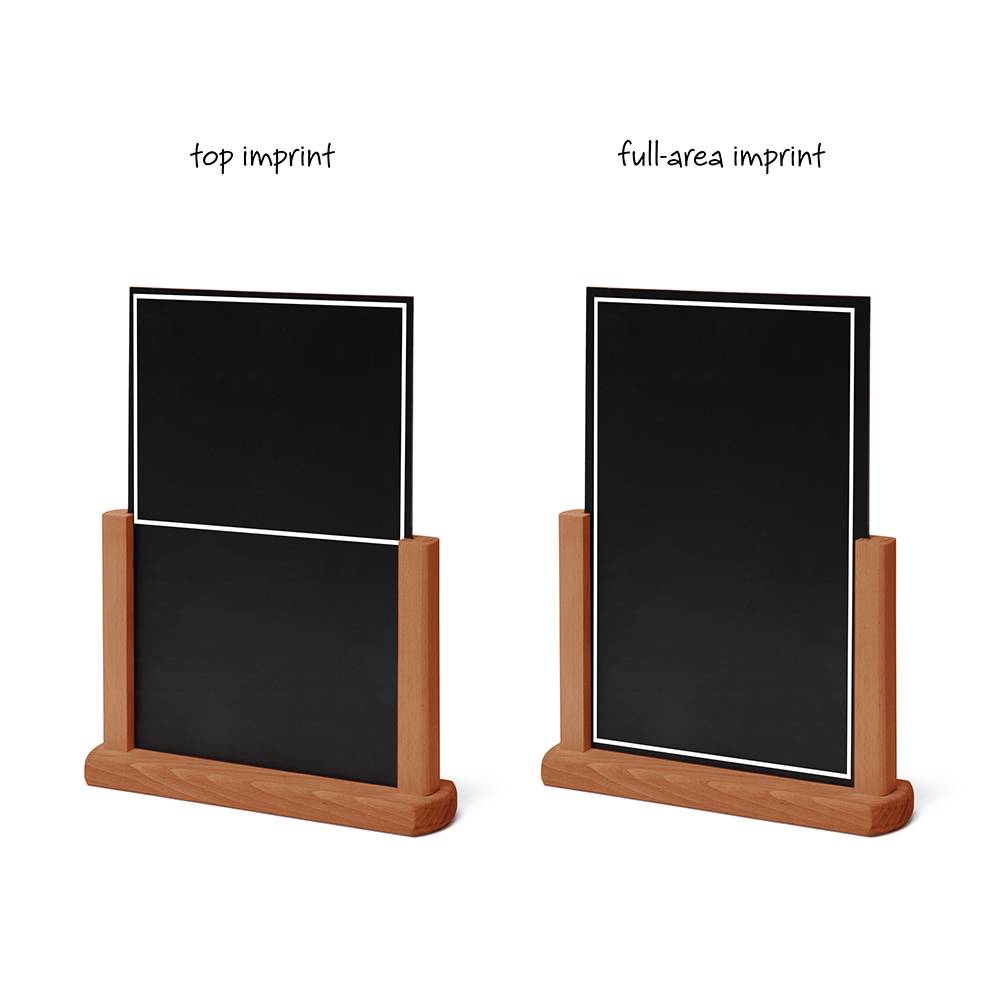 Drevený menu stojan s dreveným podstavcom je vhodný na stôl alebo pult vašej reštaurácie, kaviarne či bistra. Vkusne doplní váš interiér a priláka zákazníkov na najnovšie špeciality. Čierna popisovacia doska je vhodná pre všetky typy kriedových popisovačov (nájdete v príslušenstve).- Moderný a zároveň retro. Ideálny doplnok pre vašu reštauráciu či bistro.