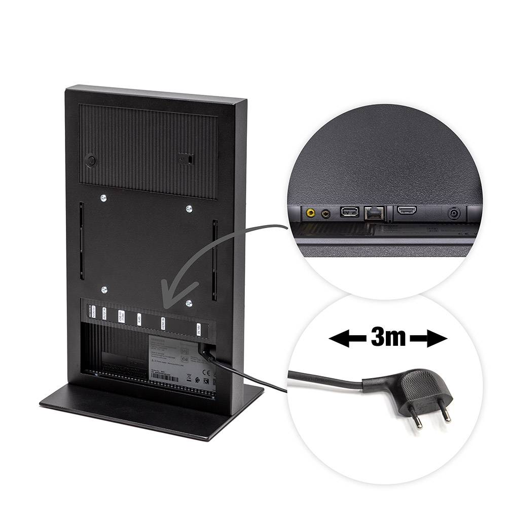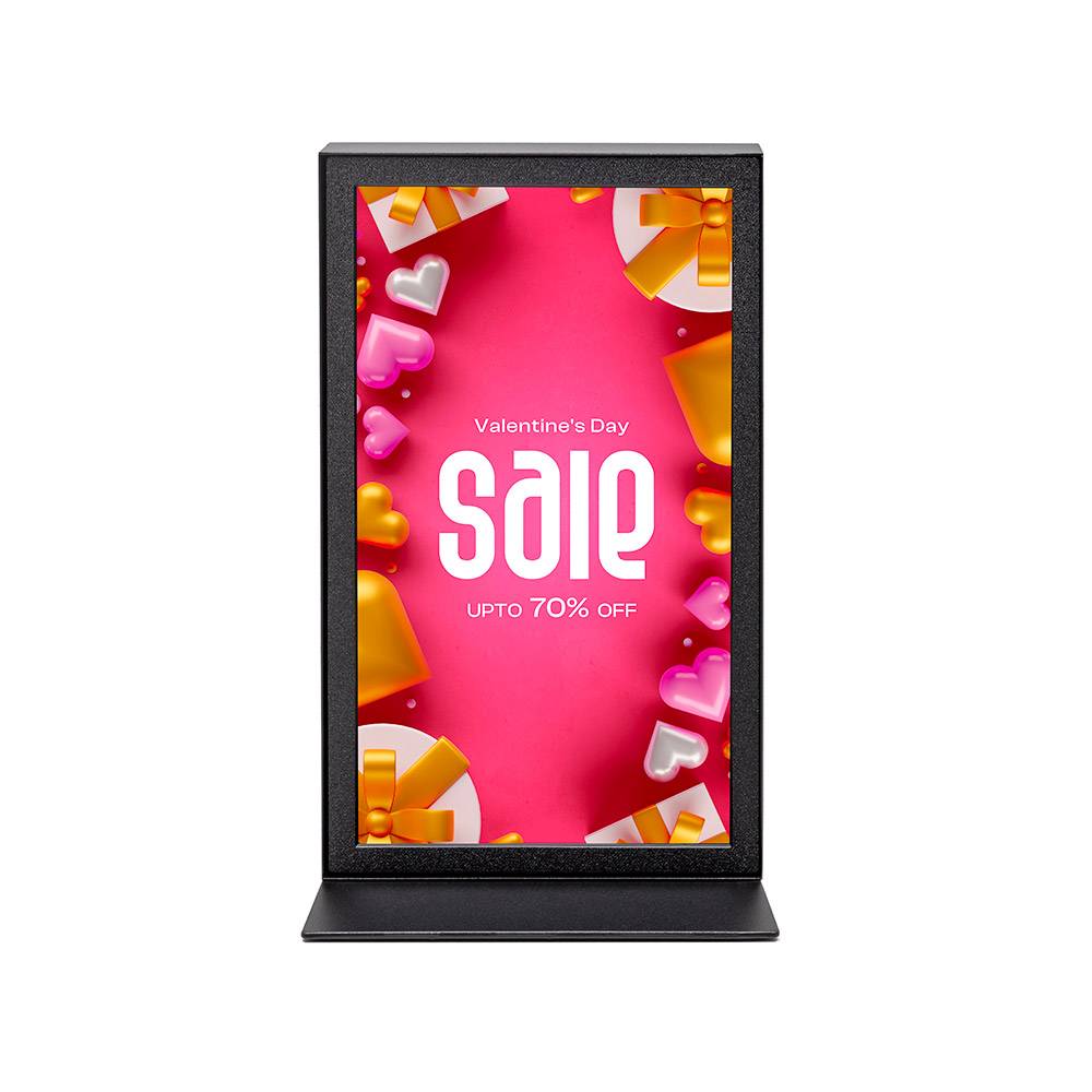Digitálny pútač na stôl v tvare T s 13" obrazovkou Samsung FHD so živými farbami vynikne na každom stole alebo pulte. Jeho elegantný a jednoduchý dizajn je umocnený rámom odolným voči odtlačkom prstov. Ideálny pre recepcie, predajné pulty a servisné priestory. Je dodávaný kompletne zmontovaný a pripravený. 24/7 z USB portu alebo upgradujte na Samsung VXT CMS!- Stolný digitálny pútač v tvare T s 13” obrazovkou na výšku