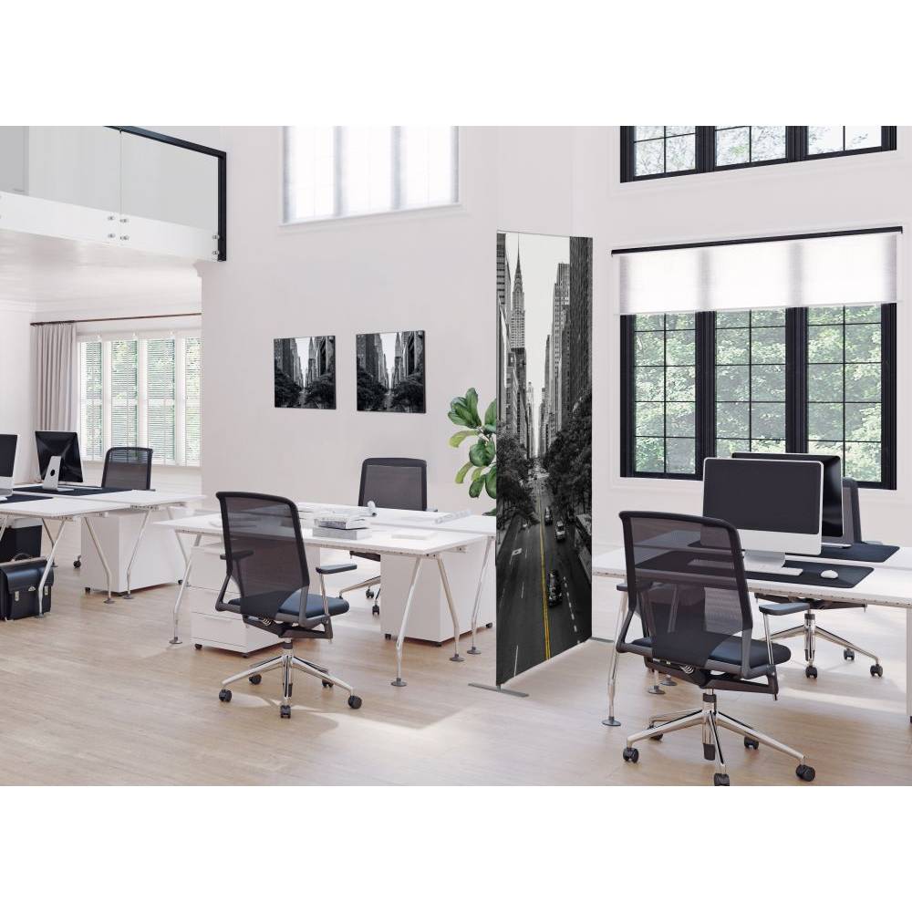 Kompletná sada čierneho textilného prepínacieho rámu Elegant so štandardnou tlačovou predlohou. Textilné prepínacie rámy sú ideálne na dekoráciu stien v kanceláriách alebo verejných priestoroch, kde dokážu vytvoriť atmosféru. V štýlovom čiernom profile s hrúbkou iba 22 mm je látka uchytená vďaka silikónovému obšitiu. Motív je vytlačený na látke Soft Knit s klasifikáciou B1, čo z nej robí ideálny a bezpečný materiál na použitie vo verejných priestoroch, kanceláriách alebo na akúkoľvek dekoráciu interiéru.Čierny textilný prepínací rám Elegant so štandardnou tlačovou predlohou je dodávaný zmontovaný, čo znamená, že ho môžete ihneď nainštalovať na stenu. Súčasťou rámu sú predvŕtané diery, ktoré s nasadenou látkou nie sú vidieť. Stačí si vybrať ten správny motív.- Kompletná sada textilného rámu s potlačou- Štandardný motív potlače- Sublimačná tlač na 100% polyester- Stupeň požiarnej odolnosti B1- Skvelá dekorácia na stene v kanceláriách alebo verejných priestoroch
